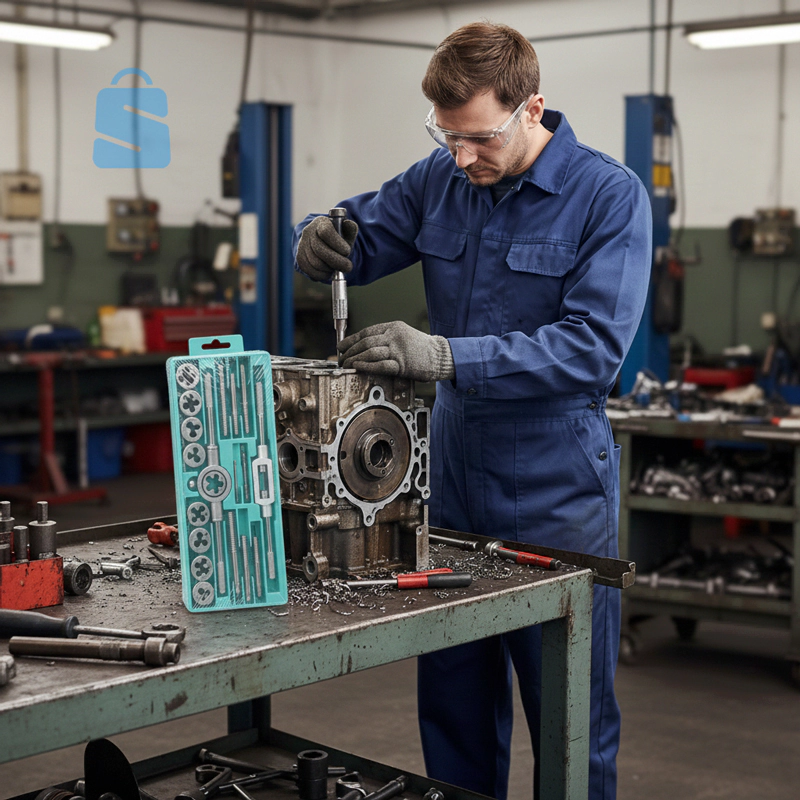 نظف الخيوط القديمة والمكسرة والتالفة مع مجموعة الصنبور والقالب .